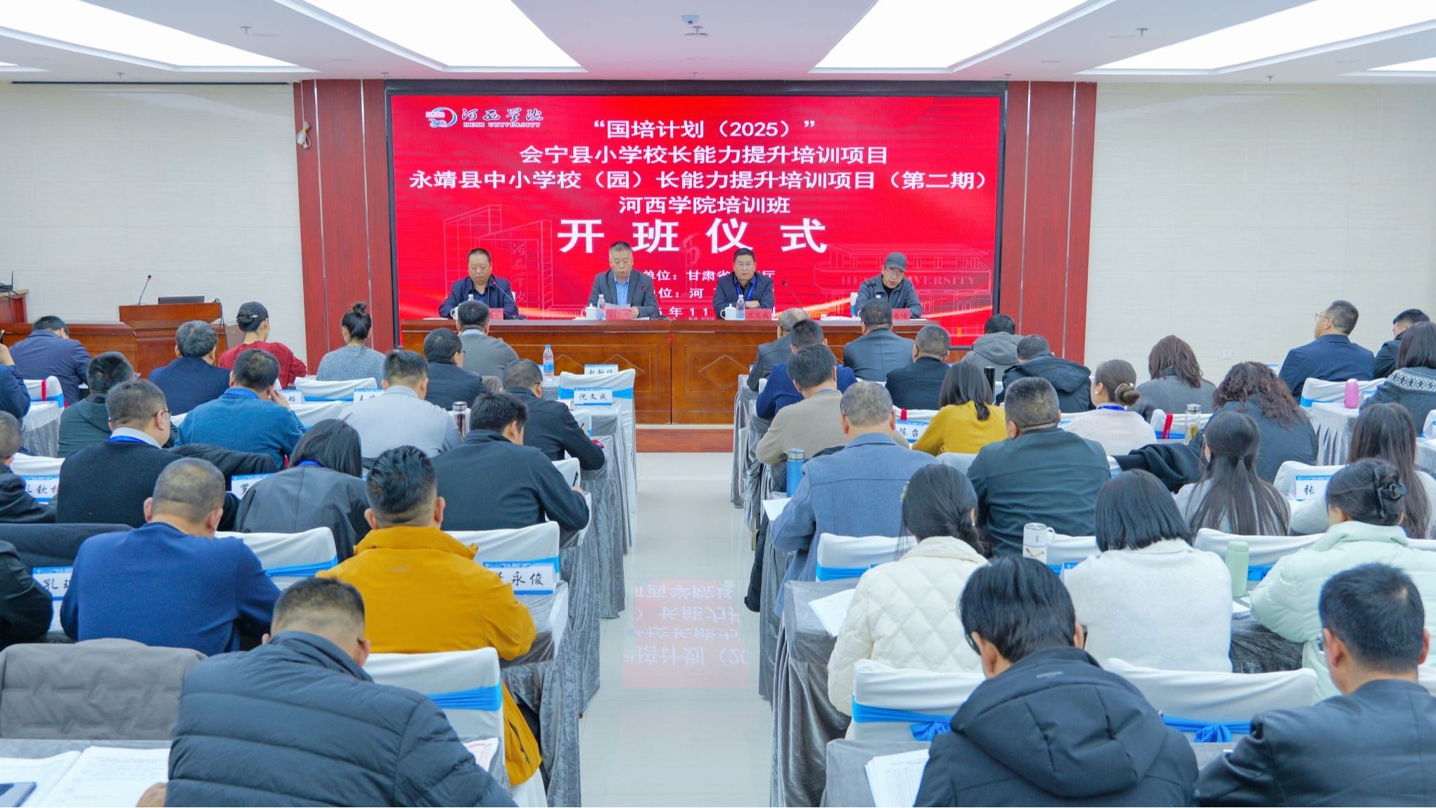 11月19日,由甘肃省教育厅主办,河西学院承办的“国培计划(2025)”县域教师发展整县提升培训项目——会宁县小学校长、永靖县中小学校(园)长能力提升培训举行开班仪式。会宁县教育局教研室张希博、永靖县领队沈文成,继续教育学院负责人,项目首席专家、班主任、培训学员共130人参加。