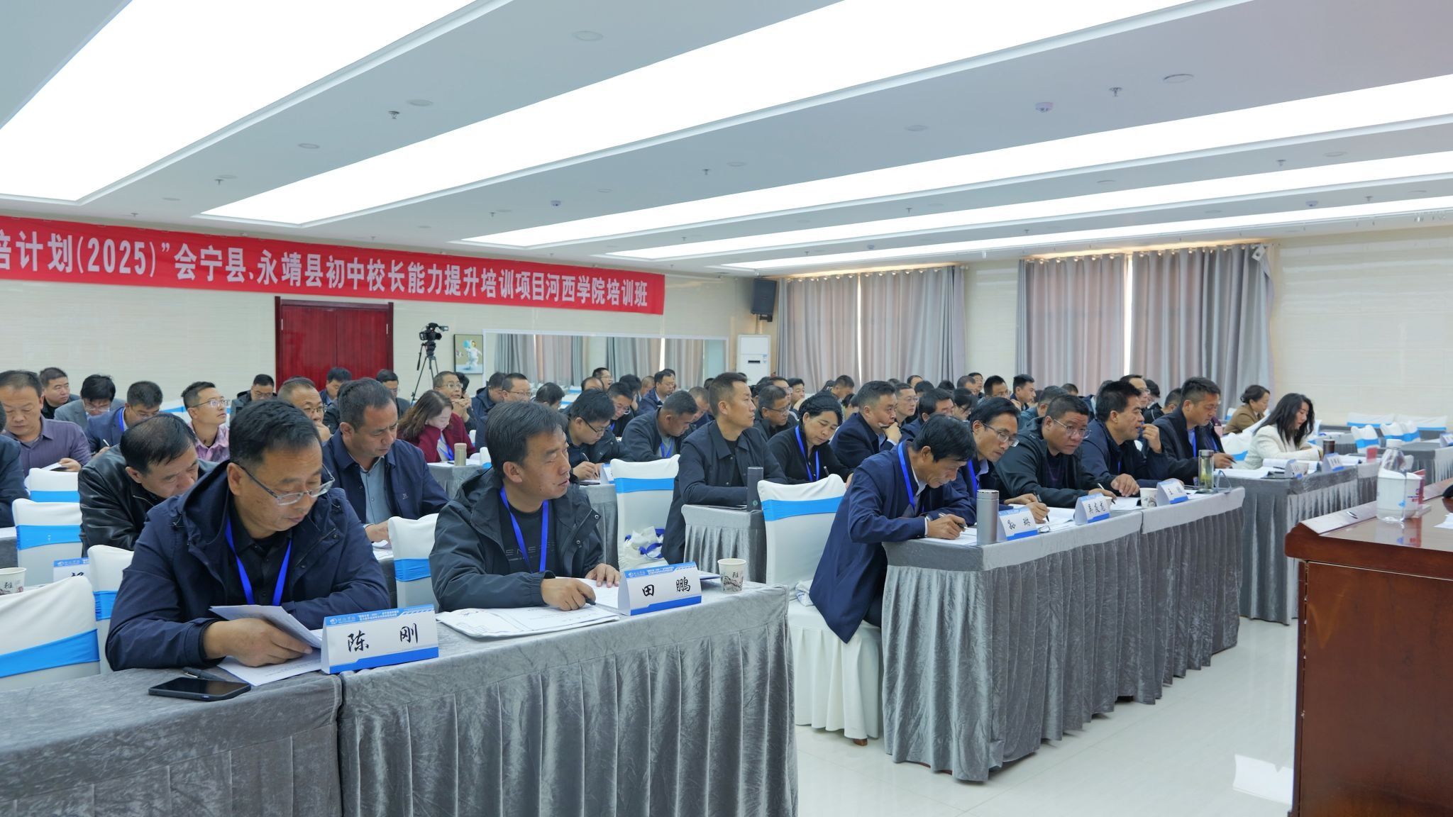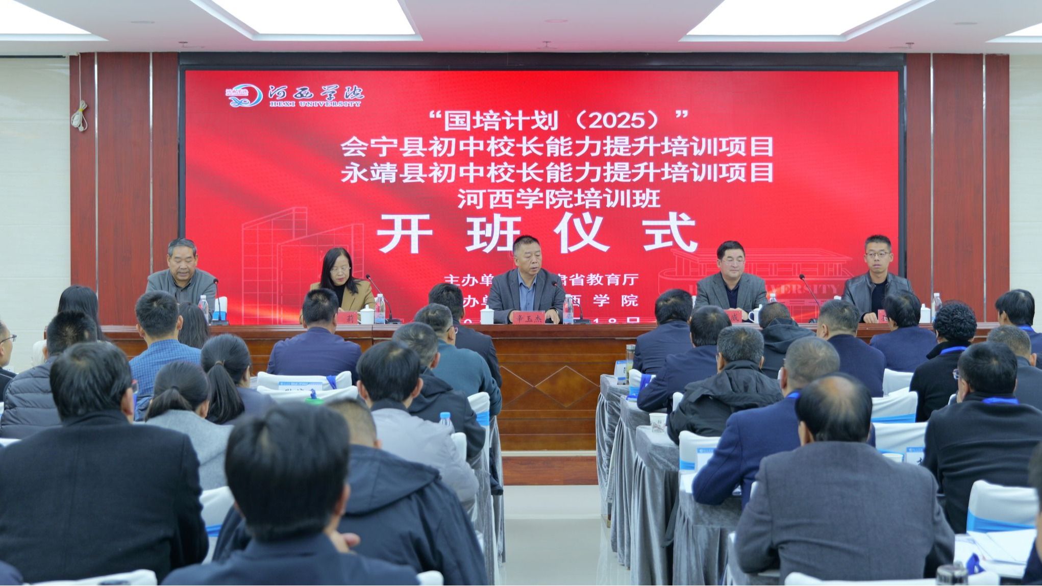 10月18日,由甘肃省教育厅主办,河西学院承办的“国培计划(2025)”县域教师发展整县提升培训会宁县、永靖县初中校长能力提升培训项目举行开班仪式。会宁县教学研究室副主任柴殿威、永靖县黄河中学校长孙延鹏,继续教育学院负责人,项目首席专家、班主任、培训学员共80人参加。