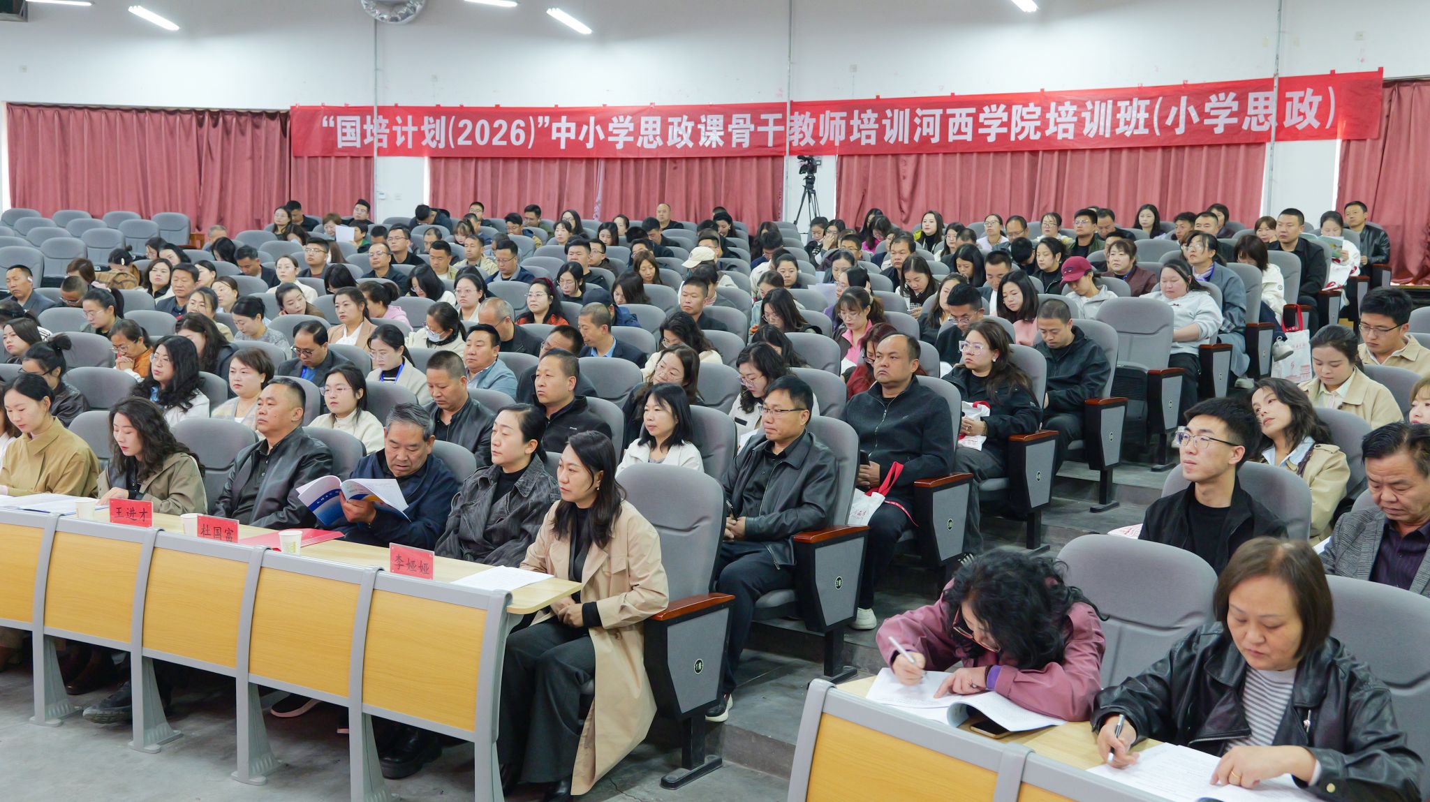 4月21日,由甘肃省教育厅主办、河西学院承办的“国培计划(2026)”中小学思政课骨干教师培训(第一期)开班仪式顺利举行。党委常委、副校长、组织部部长杜明奎出席并致辞,继续教育学院负责人、项目首席专家、培训班班主任及202名参训学员参加。